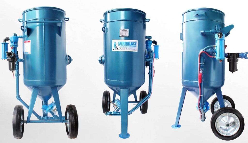 Recommended abrasives are Coal Slag, Copper Slag, Garnet, Steel Shot and Steel Grit, Machines are fitted with Flat Sand Valve / Thomson valve / Dosing valve or Steel Grit valve depending on the abrasive used. Machines are supplied with either Pneumatic or Electro-pneumatic 12/24 V dead-man control valves for remote control operation. For advanced safety operation in petrochemical and shipyard industry, Euroblast recommend Electro-pneumatic remote control valve. For durability and high productivity, Micro valve is recommended for garnet blasting media and steel grit valve for steel grit blasting media.