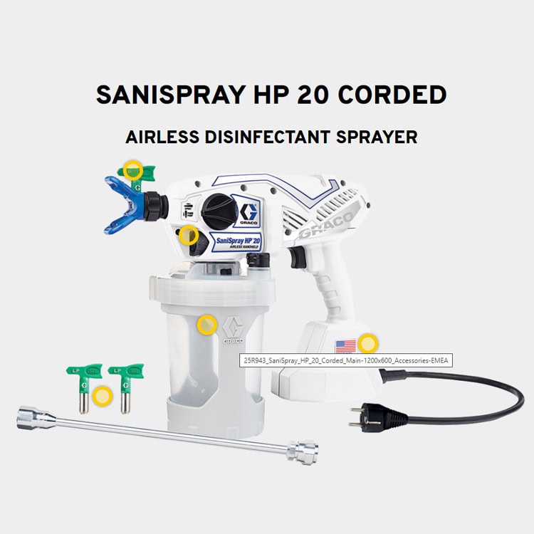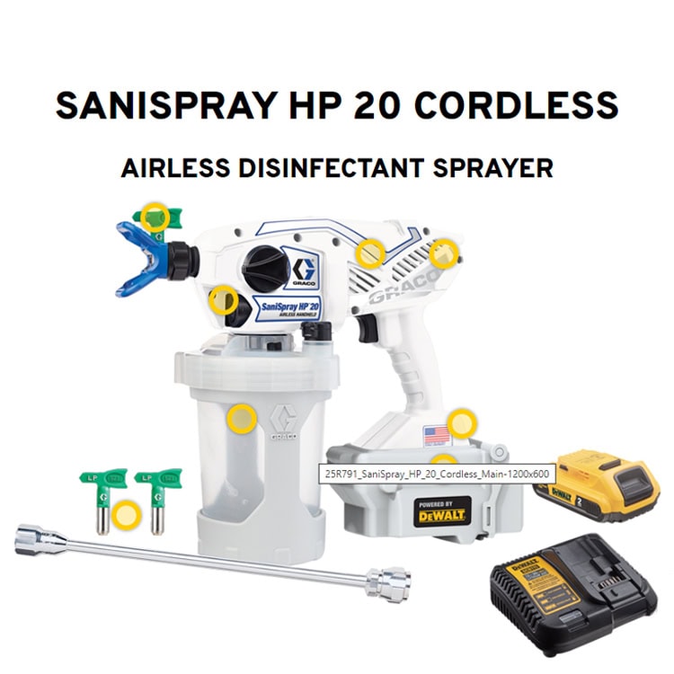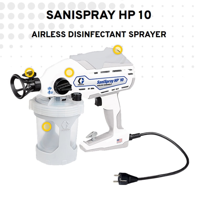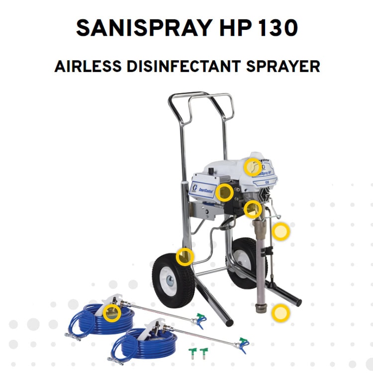 Graco’s SaniSpray HP products have been designed to deliver consistent coverage, without heavy drips and runs, so that you can achieve specified disinfectant dwell times. Don’t leave your success to chance. Graco SaniSpray solutions include innovative, patented technologies to deliver highest productivity on all your cleaning jobs small or large.