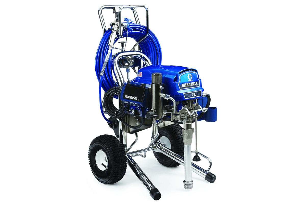 With a 2.2 hp brushless DC motor, the Ultra Max II 795 can handle multiple guns and is ideal for the professional residential remodeling and repainting contractor who sprays a wide variety of coatings.