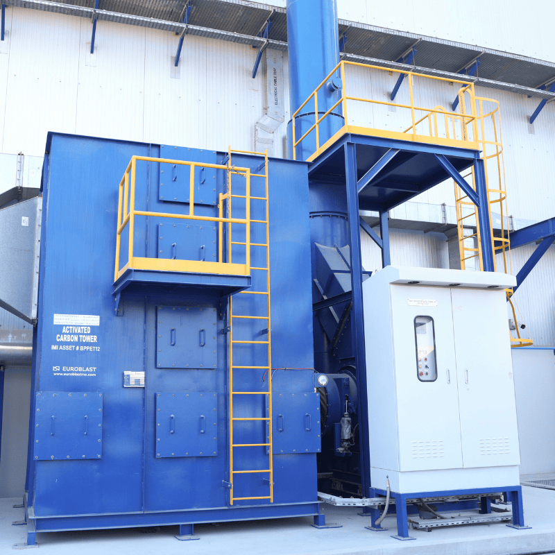 The paint extraction fan normally used is centrifugal type and the capacity of the fan is estimated based on the room volume, and velocity considering the local administration regulations of required air-change / air velocity Activated Carbon Tower – Paint Fume Extraction System